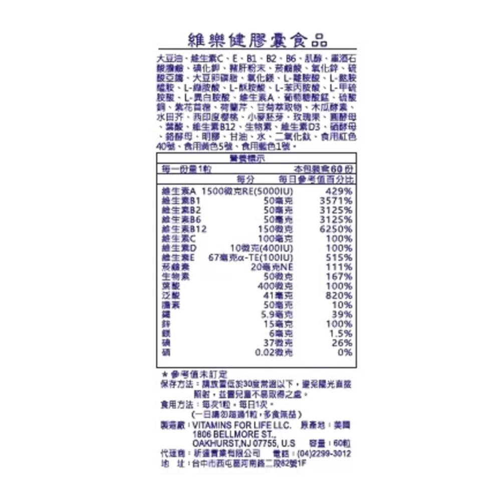 .水溶性/脂溶性維生素+礦物質,一天一粒一次補足。