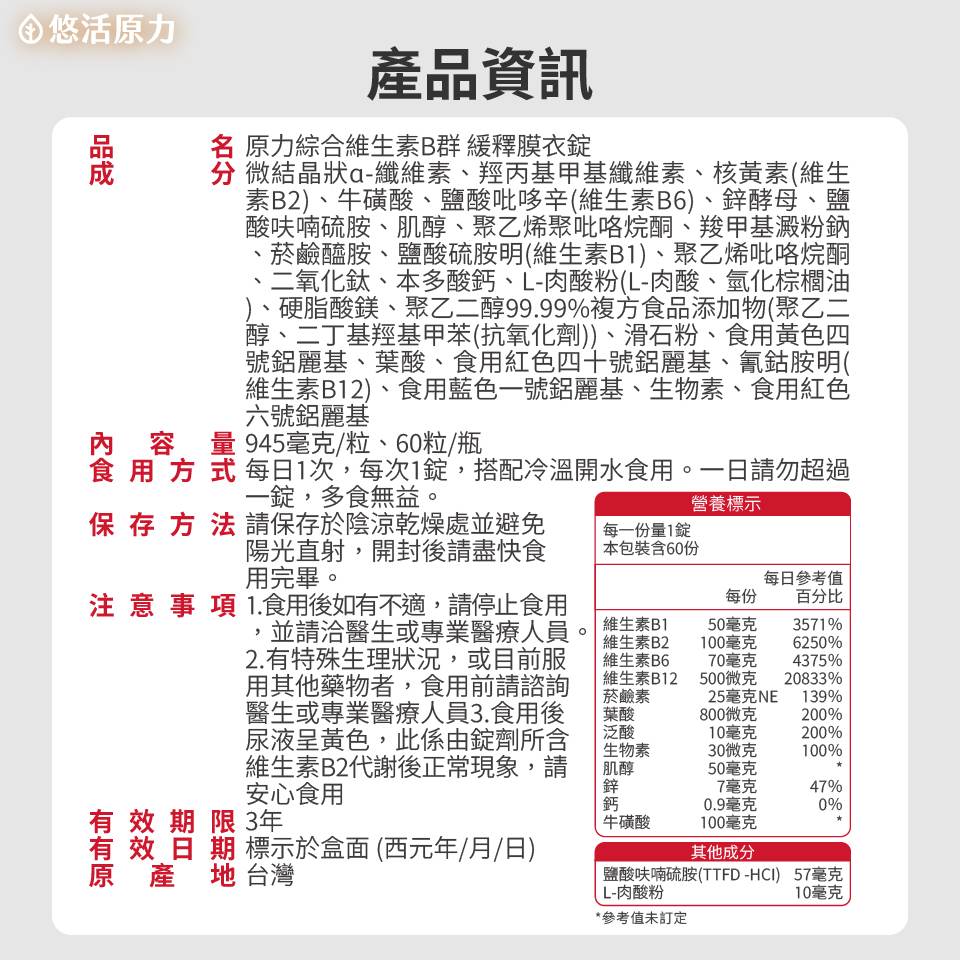 YOHO悠活原力 維生素B群長效緩釋錠 60錠/瓶 | 富康活力藥局購物商城