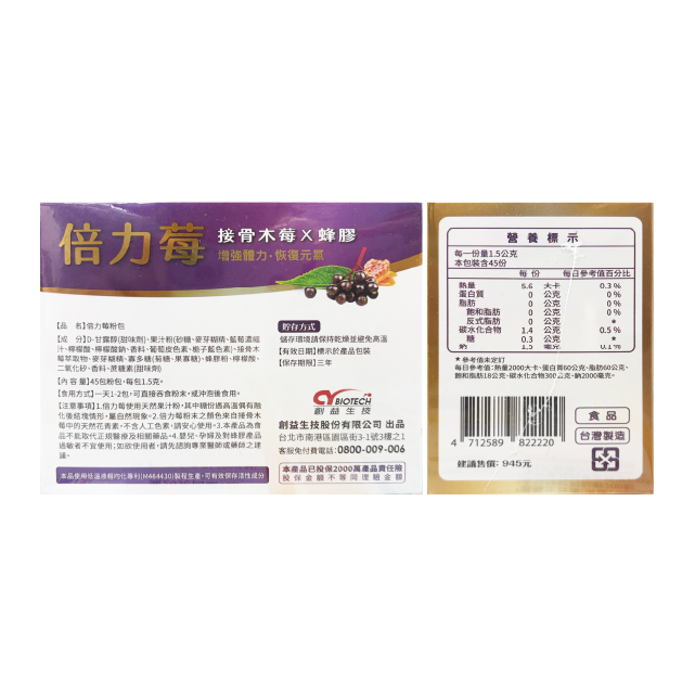 ※ 倍力莓含有蜂膠,因此一歲以下嬰幼兒、孕婦及對蜂膠過敏者皆不宜使用