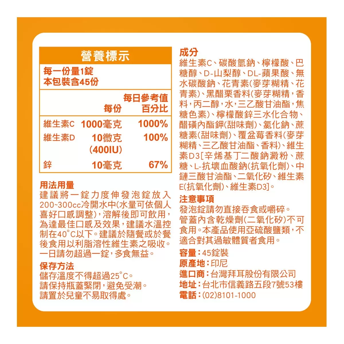 ✔️ 每錠含1000mg維他命C、10μg維他命D、10mg鋅