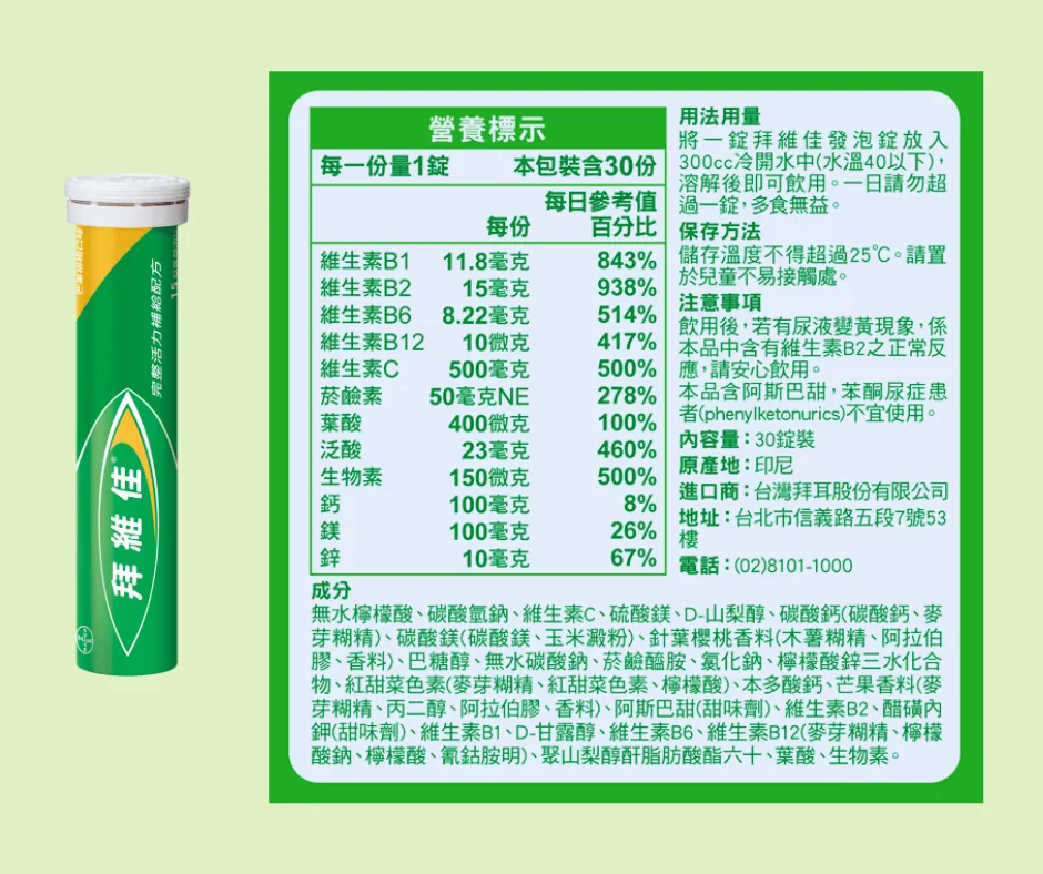 拜維佳 維他命B群發泡錠(芒果柳橙) 30錠 | 富康活力藥局購物商城
