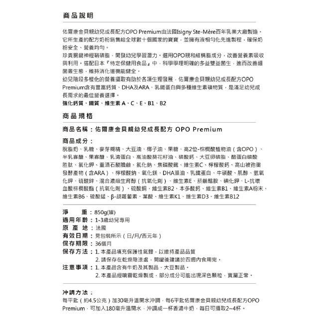 佑爾康金貝親 3幼兒成長配方OPO Premium 850g | 富康活力藥局購物商城