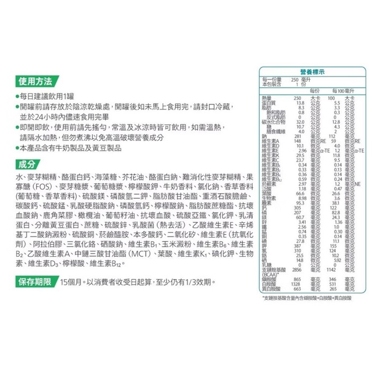 ※ 即開即飲,使用前請先搖勻,常溫及冰涼時皆可飲用,如需溫熱,請隔水加熱,但勿煮沸以免高溫破壞營養成分